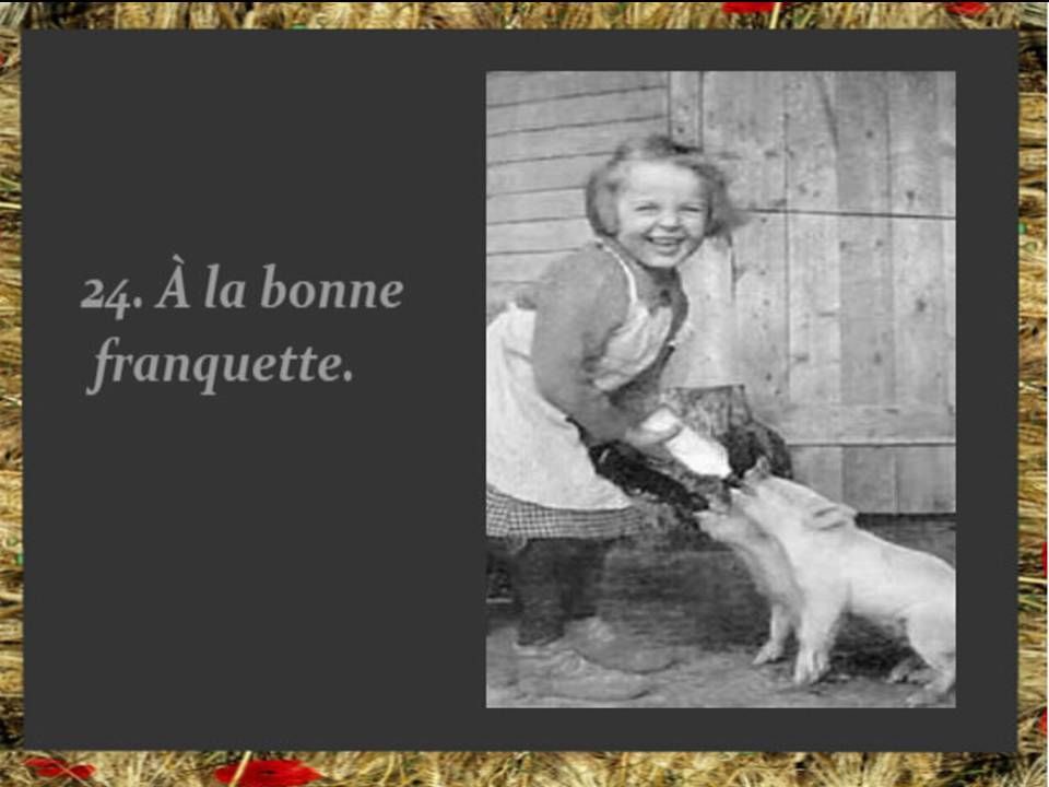 Ce sont des expressions que j'ai entendues dans mon enfance et que j'utilise toujours... Sympas aussi les vieilles photos et mamie n'a pas l'air d'avoir peur du loup! ;-) <br /> bisous